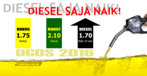 Harga Petrol Kekal, Cuma Diesel Naik 10 Sen Sepanjang Ogos 2016
