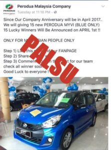 Auto Terkini Perodua Nafi Hadiah 15 Myvi Di Laman Facebook ‘Perodua Malaysia Company’By Abang GYL12/01/2017