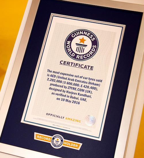 - Syarikat Z Tyres di Dubai pernah mencipta rekod dunia dengan menghasilkan set tayar termahal dunia yang dijual pada harga AS$600,000 (RM2.47 juta). Rekod itu diiktiraf Guinness World Record pada 2016.