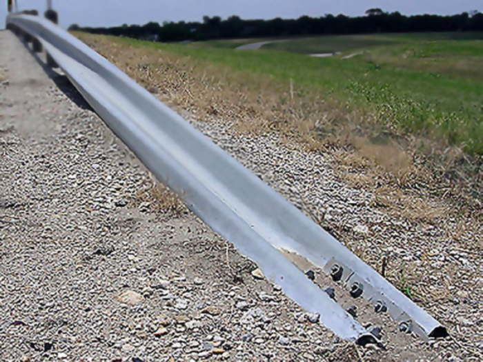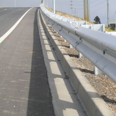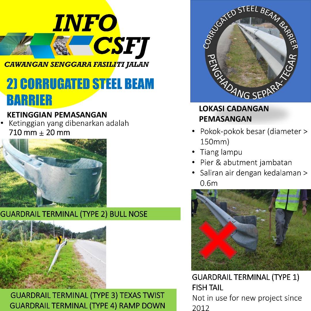 2. Pengadang Separa-Tegar (Corrugated Steel Beam Barrier)