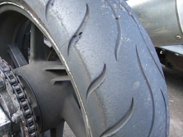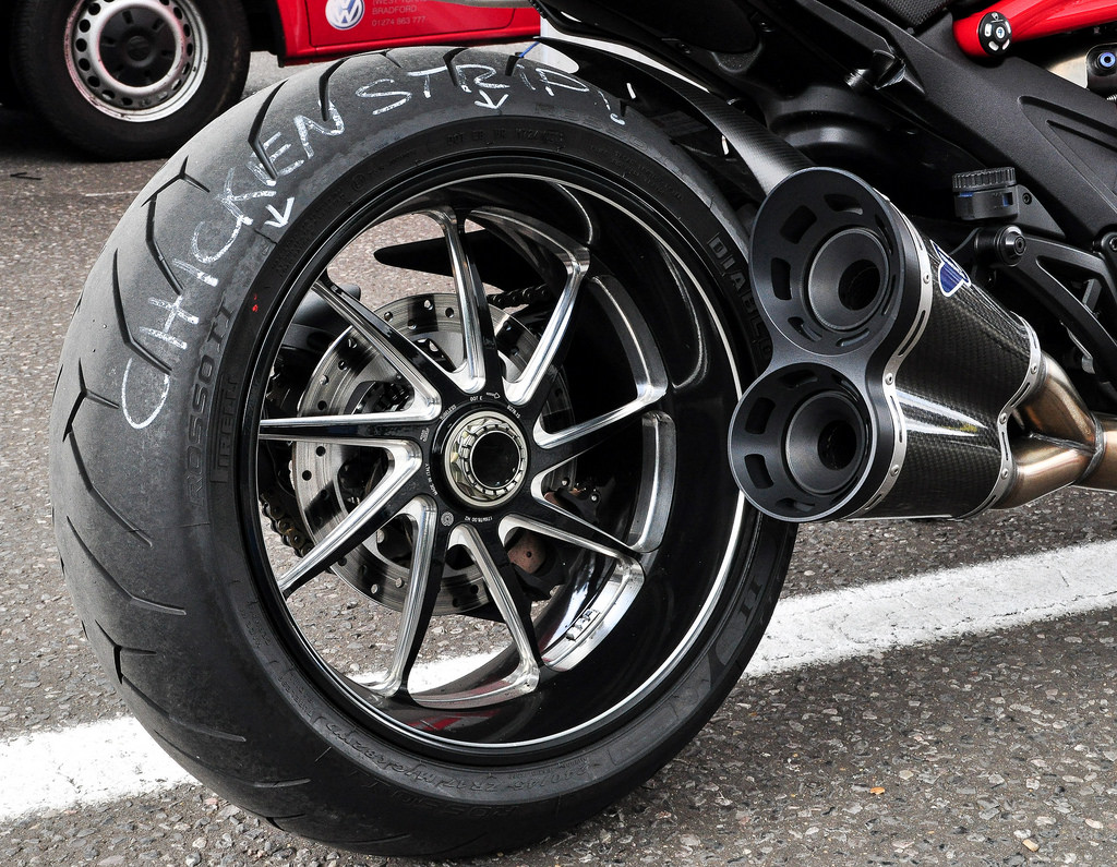 Kebiasaannya, motosikal kategori sportbike bersesaran 600cc akan dimuatkan dengan tayar belakang selebar 170-180mm, manakala jentera bersesaran 1000cc akan menggunakan tayar selebar 190mm. Tayar belakang bersaiz 200mm pula lazimnya lebih banyak digunapakai atas trek lumba. Walaupun brader berjaya membereskan ‘chicken strips’ tayar belakang, tetapi belum tentu tayar depan dapat dibereskan dengan mudah kerana lebih payah.