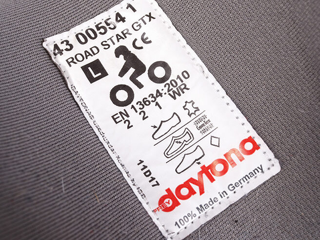 Simbol CE ialah singkatan kepada ‘Conformité Européene’ dalam Bahasa Perancis, bermaksud mematuhi piawaian Eropah. Anda juga mungkin pernah lihat label ‘EN’. Itu pula bermaksud ‘European Norm’, atau ‘Norma Eropah’. Minta maaf, jaket yang anda selalu pakai terbalik itu (walaupun berjenama ternama), tidak memerlukan kelulusan CE kerana itu bukan sut menunggang motosikal.
