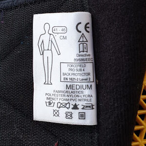 Kod EN1621-2 untuk pad pelindung tulang belakang, manakala kod EN1621-3 piawaian kepada pad pelindung dada.