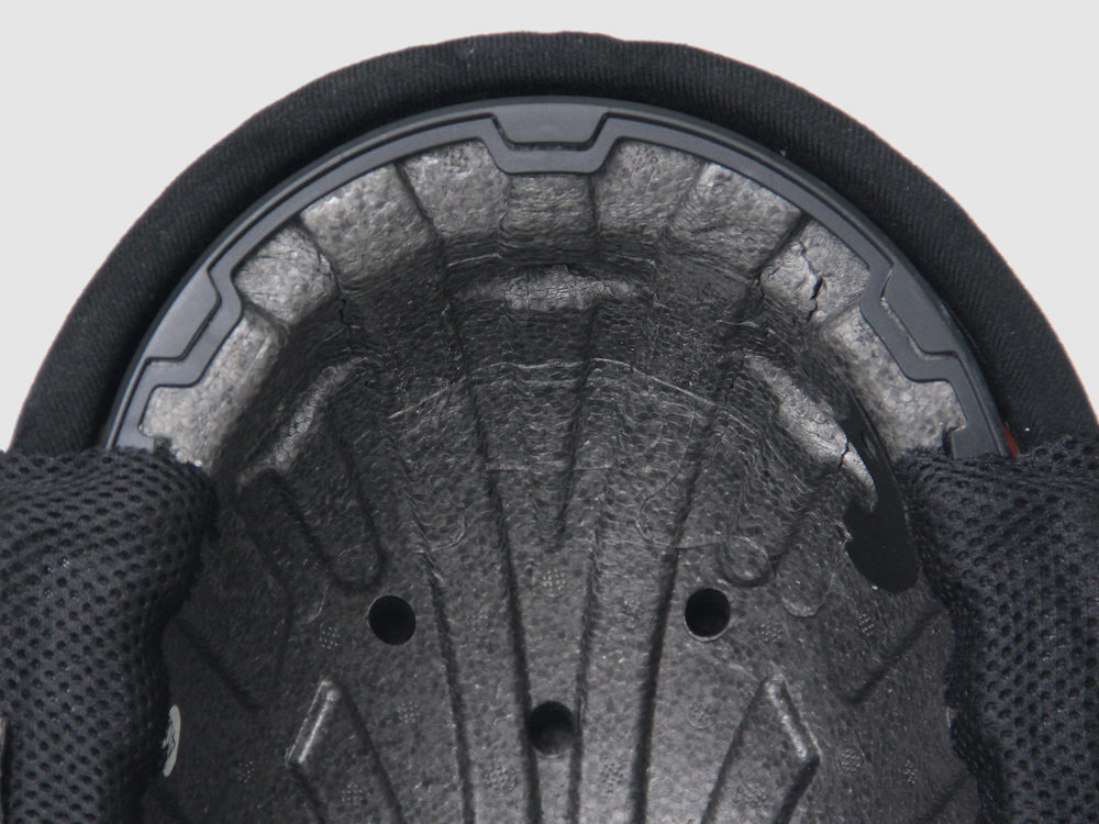 Pelapik ‘Expanded Polystyrene (EPS)’ antara cengkerang dan span, memainkan peranan menyerap pergerakan kepala dalam helmet. Ia bukan saja diuji untuk menyerap hentakan, tetapi juga untuk ketahan terhadap peluh, produk kosmetik, produk rambut dan sebagainya supaya tidak rosak. Span juga diuji untuk ketahanan sama.
