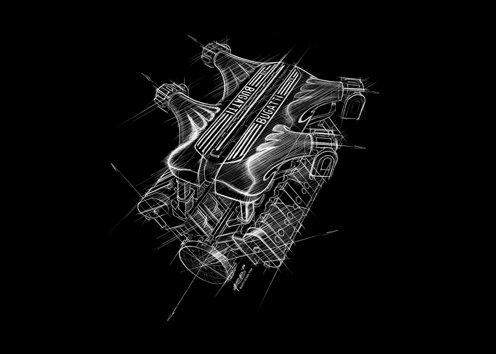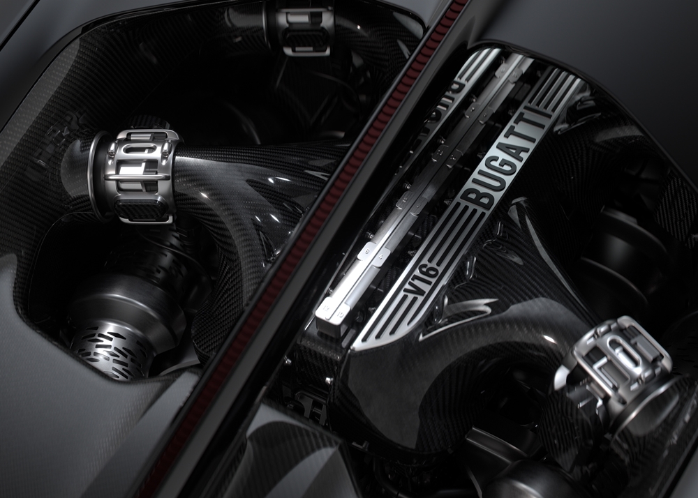- Plenum, komponen kritikal dalam mana-mana enjin aspirasi semulajadi, menjadi tumpuan utama proses reka bentuk kerana Bugatti mahu mencapai keseimbangan sempurna antara prestasi dan estetika.