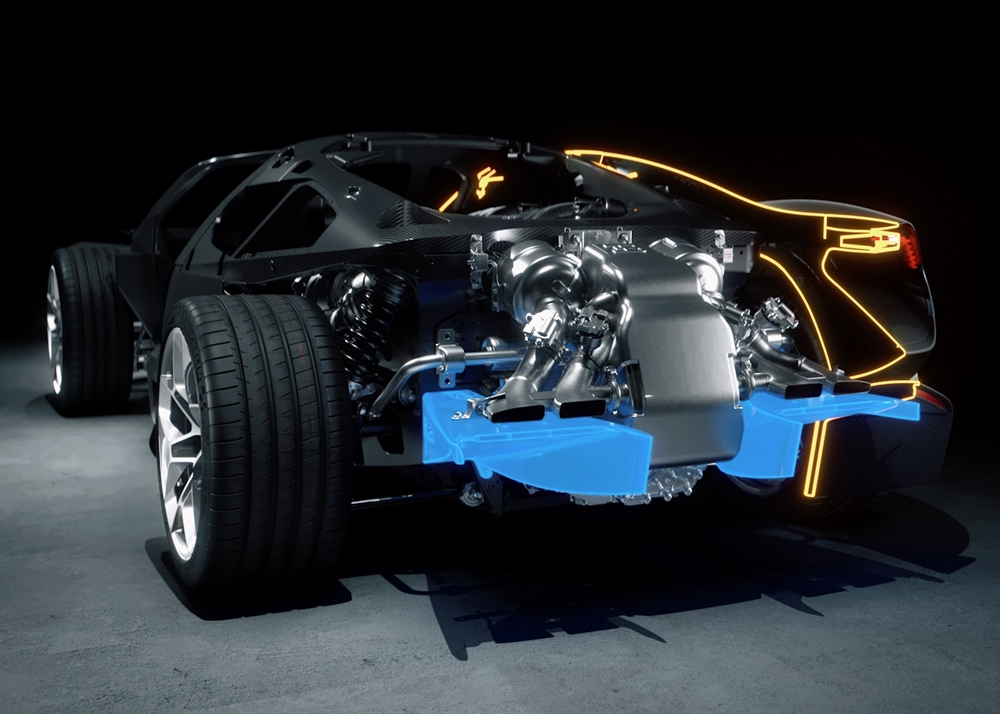 - Gabungan enjin pembakaran dalaman dan sistem hibrid menghasilkan output 1,800 ps. Enjin V16 menyumbang 1,000 ps manakala tiga motor elektrik menambah 800 ps serta daya kilas serta-merta.