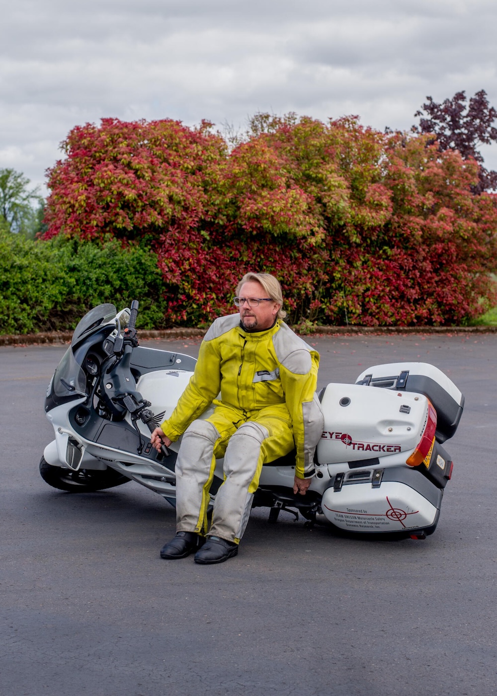 - Berdiri membelakangi motosikal.