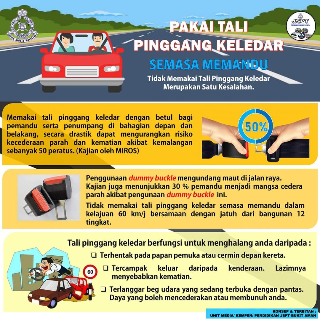 Perkongsian itu juga mendedahkan kesalahan tidak memakai tali keledar ketika memandu boleh dikompaun di bawah Kaedah-Kaedah Kereta Bermotor (Tali Pinggang Keledar) (PU (A) 378/1978 004).