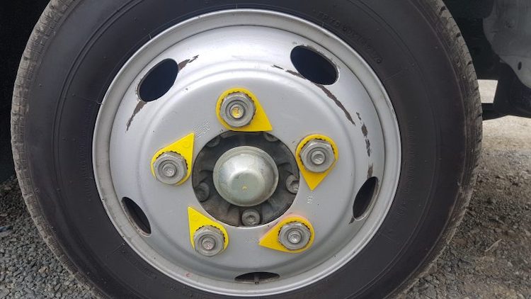 - Guna indikator plastik pada sebagai petunjuk atau klip antara nat untuk elak berputar. Jika ada kesan plastik cair atau warna pudar, itu petunjuk awal ada masalah lain pada roda seperti brek melekat atau hab kering.