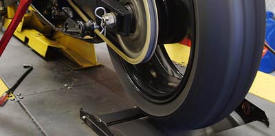 Ini ialah jenis Dyno yang boleh dijumpai di pasaran. Cara penggunaan, motosikal diikat atas platform, dan tayar belakang diletakkan atas penggelek (roller). Dyno jenis ini akan membaca kuasa enjin selepas melalui sistem trenkuasa sepenuhnya.