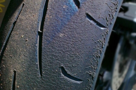 Ini disebabkan tekanan angin kurang kerana struktur tayar tidak menyentuh permukaan jalan dengan baik. Penyelesaiannya, buat pemeriksaan tekanan angin tayar seperti dicadangkan pengeluar. Cadangan tekanan angin tayar untuk tunggangan harian ialah 29psi (depan) dan 33psi (belakang).
