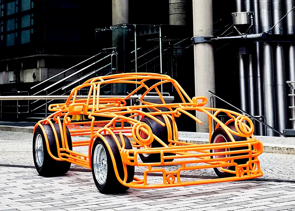 Arca ini diukur, dibentuk dan dikimpal tangan hasil sentuhan Benedict Radcliffe dari London. Beliau sebelum ini pernah menghasilkan arca Teksi London, Lamborghini Countach, Ferrari F40 dan Honda Gold Wing!