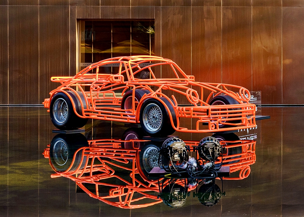 Arca seni itu dibuat dengan tangan sebagai tribut kepada jentera lumba Porsche 934, dan ditayangkan kali pertama di Milan sebelum dipamerkan di butik mewah Larusmiani serta dibawa ke merata tempat seperti Beijing dan Shanghai dengan kerjasama Porsche China.