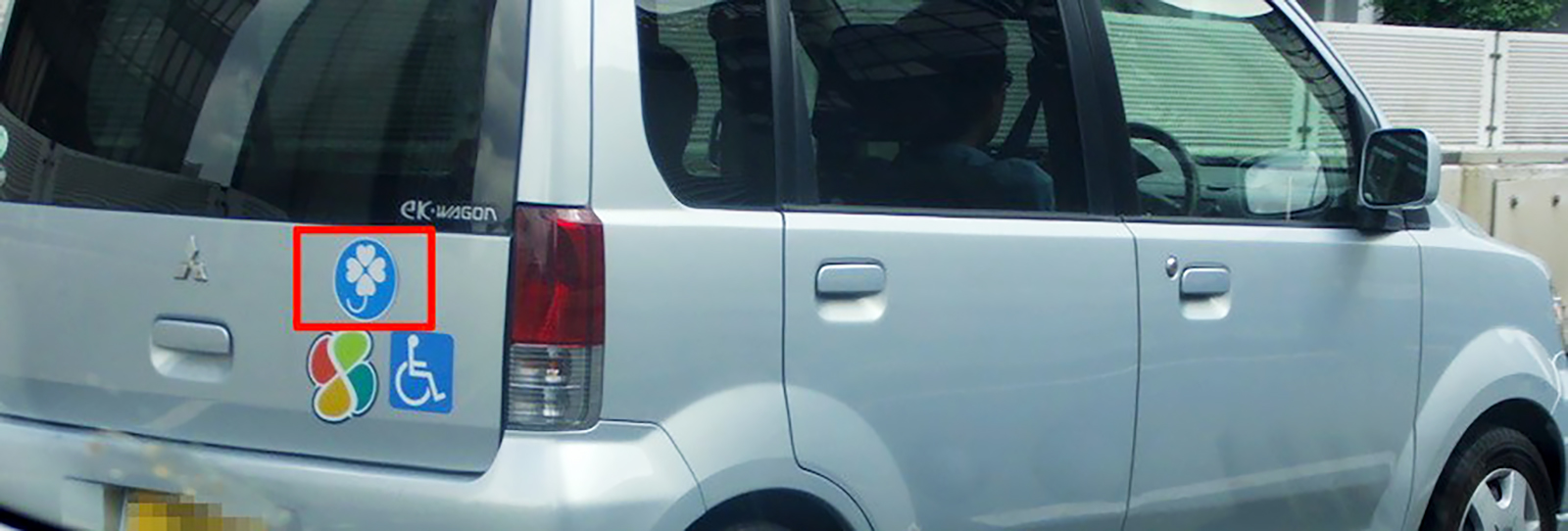Berbeza negara lain yang menggunakan simbol orang duduk atas kerusi roda, sebaliknya Jepun menggunakan simbol bunga denan kelompak bentuk cinta untuk memaklumkan yang si pemandu daripada golongan orang kurang upaya (OKU) fizikal.