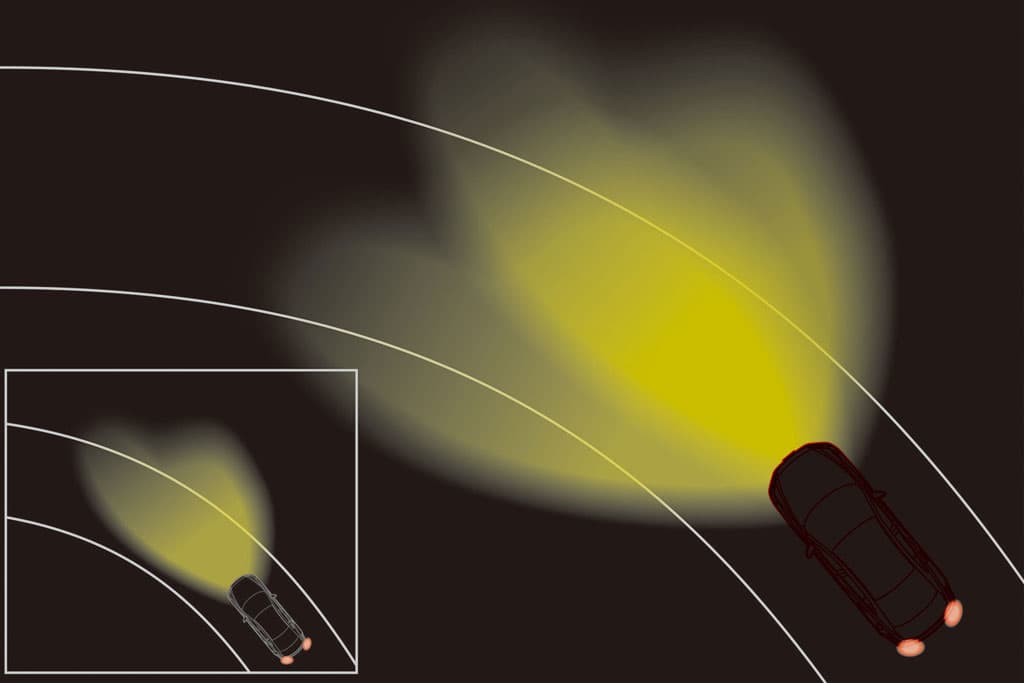 Contohnya, ketika dua kenderaan saling berselisih, suluhan lampu akan dialihkan atau dihalakan ke kawasan lain supaya tidak menyuluh pemandu bertentangan. Bantuan sensor dan ciri pandang malam (night vision) pula akan memastikan masalah silau tidak berlaku.