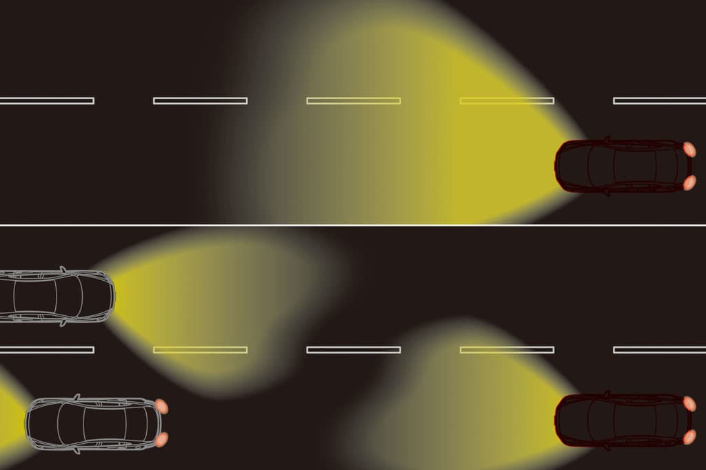 Kamera depan yang dipasangkan pada cermin pandang belakang akan mengesan kehadiran kenderaan lain berdasarkan suluhan lampu. Kemudian signal akan dihantar kepada lampu depan untuk mendapatkan cahaya paling terang tanpa menyebabkan silau.