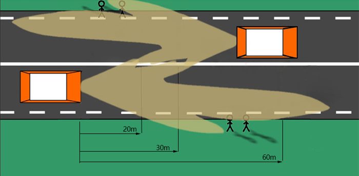 Ada dua jenis pemanduan kenderaan, iaitu pemanduan sebelah kanan (RHD) dan sebelah kiri (LHD). Kawasan suluhan cahaya untuk dua jenis pemanduan itu adalah berbeza. Suluhan cahaya lampu pada bahagian penumpang sebelah adalah lebih terang berbanding sebelah pemandu (lihat contoh gambar di atas).