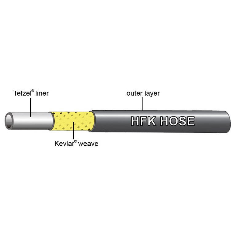2. Lapisan Kevlar: Fungsi lapisan kevlar adalah memberikan kekuatan dan struktur pada hos. Ia lapisan berbentuk seperti anyaman dengan bentuk fleksibel. Walaupun bentuk fleksibel, lapisan ini mampu menanggung tekanan tinggi daripada sistem hidraulik secara lebih efisien. Bahagian ini memiliki berat sangat ringan dan mudah dibuka-pasang dengan menggunakan alatan yang betul.