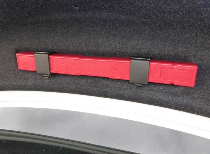 Berikut adalah bagaimana segi tiga amaran di simpan di belakang but kereta.