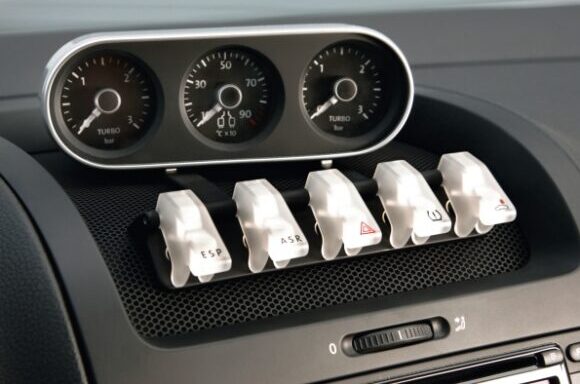 Volkswagen Golf GTI W12-650 dibina berasaskan casis asal MK5 yang dilebarkan 6.3 inci, manakala sistem suspensi direndahkan 3 inci daripada model asal MK5 GTI (foto atas). Selain casis dirombak semula, sentuhan akhir rekabentuk turut melibatkan cermin belakang yang dibentuk semula, bampar belakang futuristik dan bahagian ambilan udara (air intake) yang diperluas di depan.