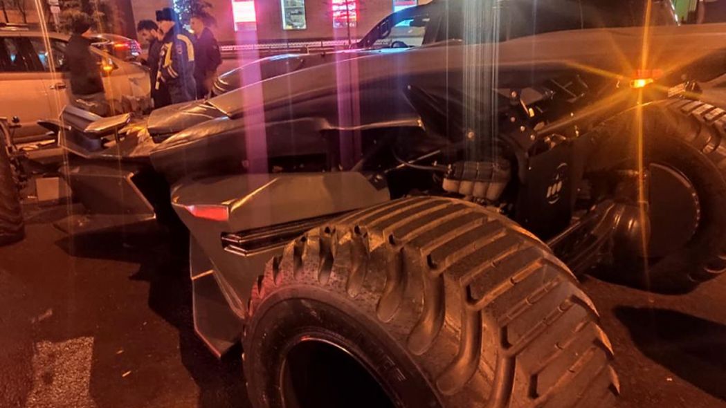 Menurut Autoblog, satu rakaman video menunjukkan trak tunda menunda Batmobile yang siap dibalutkan plastik lut cahaya. Media Rusia, RT mendakwa polis menyedari kenderaan itu diparkir di jalan utama di pusat bandar dengan nombor plat hiasan.