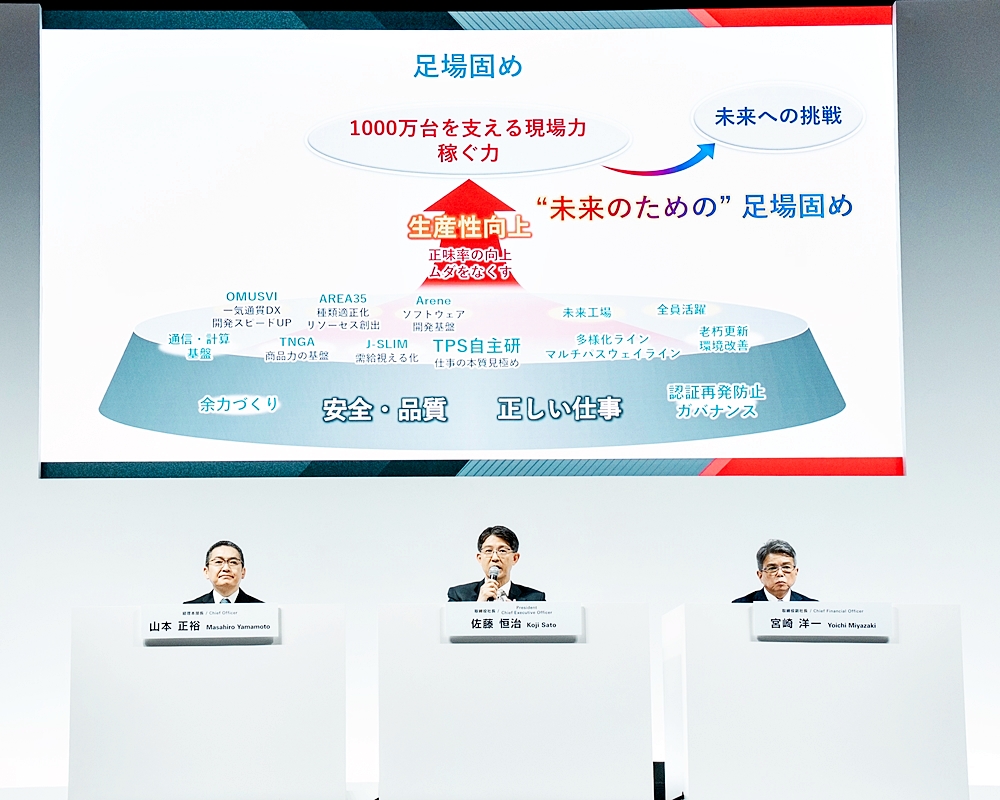 Presiden Sato dan Naib Presiden Miyazaki secara konsisten menyatakan komitmen untuk mengekalkan pengeluaran tiga juta kenderaan di Jepun yang bukan saja angka pengeluaran, tetapi simbol kepentingan peranan Toyota dalam ekonomi Jepun.