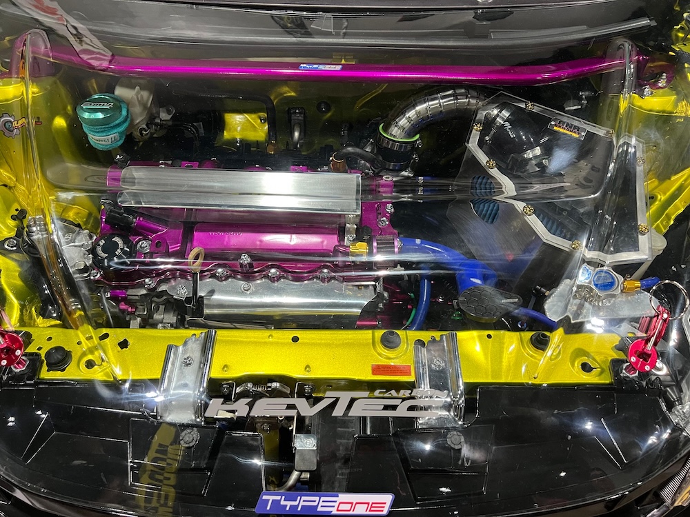 - Enjin dan kotak gear warna HKS, Candy Purple.