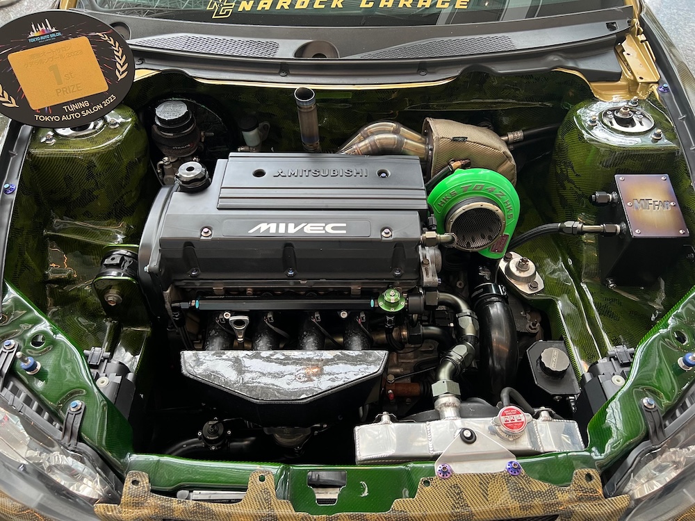 Namun, Satria Neo yang dipamerkan di pameran Tokyo Auto Salon (TASKL) 2024 ini bukan kereta biasa kerana sudah siap dimodifikasi Narrock dengan rekabentuk ‘Camo’ gentian karbon agresif yang ditambah output kuasa mencecah 500hp (boost tinggi) dan 400hp (boost rendah).