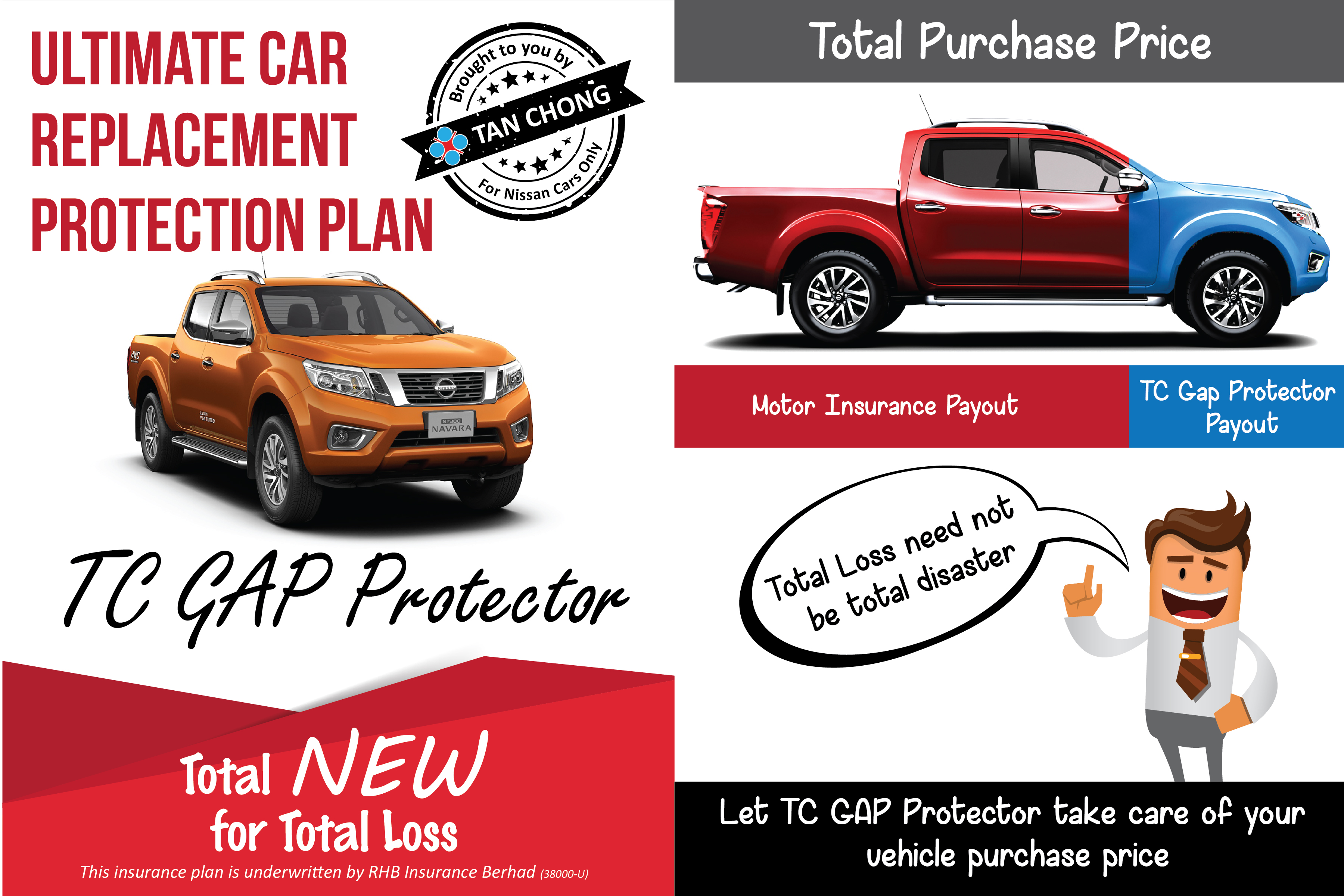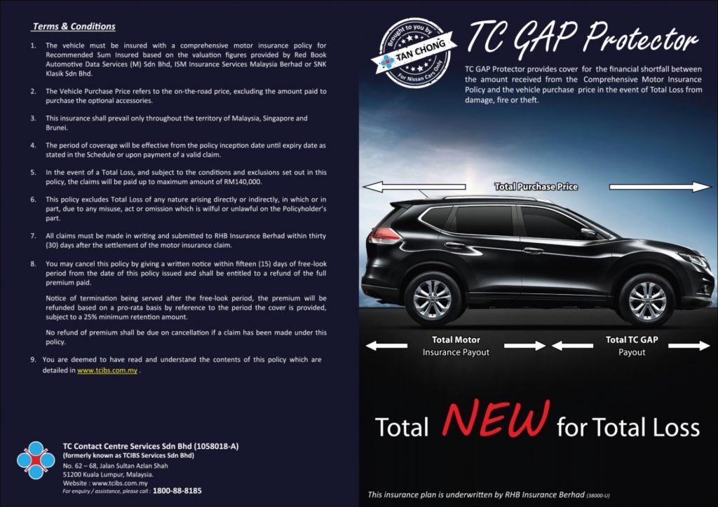 TAN Chong Insurance Business Stream (TCIBS) dengan kerjasama RHB Insurance memperkenalkan perlindungan insurans ke atas kehilangan aset, ‘Return To Invoice-Guaranteed Asset Protection (RTI-GAP)’ baharu – TC GAP Protector – yang lebih mampu milik dan eksklusif kepada pemilik kenderaan Nissan.