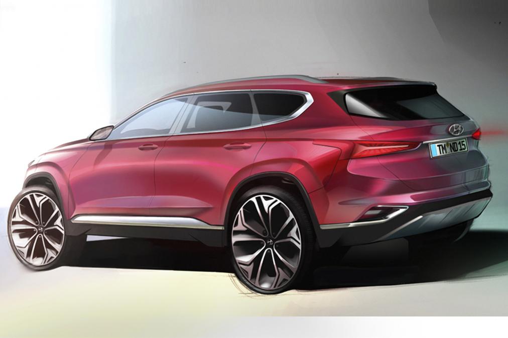 Berdasarkan imej lakaran, jelas menunjukkan rupa baharu Santa Fe ini mengambil ilham daripada rekabentuk crossover Kona. Lampu utama tampil langsing dan dipadankan dengan gril, manakala bampar depan dan lampu kabus LED menyerlahkan rupa depan yang lebih menarik berbanding model terdahulu.
