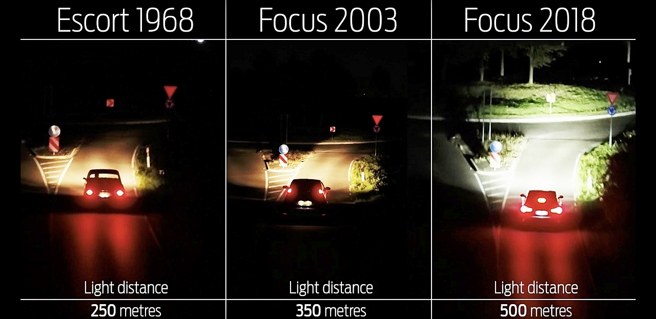 Bagi sesetengah orang, pemanduan malam begitu sensitif. Di sinilah Ford nampak peluang untuk menjadikan produk keretanya lebih selesa dan selamat. Melalui Focus baharu, Ford menjadi pengeluar pertama dunia memperkenalkan teknologi yang menggunakan papan tanda dan garisan jalan sebagai indikator untuk melaras pencahayaan lampu supaya jalan depan lebih terang.