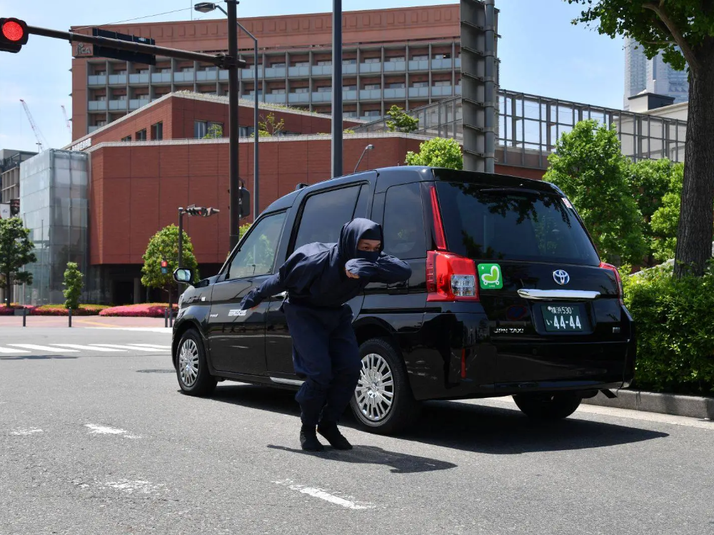 Dengan bayaran tambahan 5,000 yen (RM140), penumpang akan diiringi seorang pemandu berperanan sebagai pegawal peribadi bertopeng ninja dengan ekspresi wajah serius.