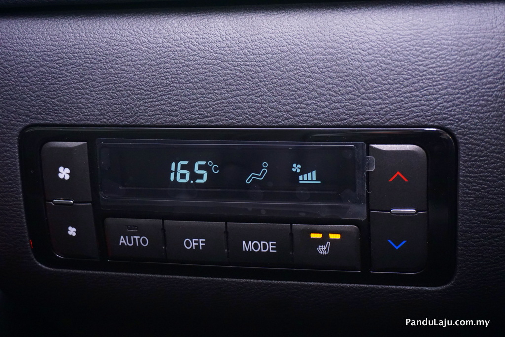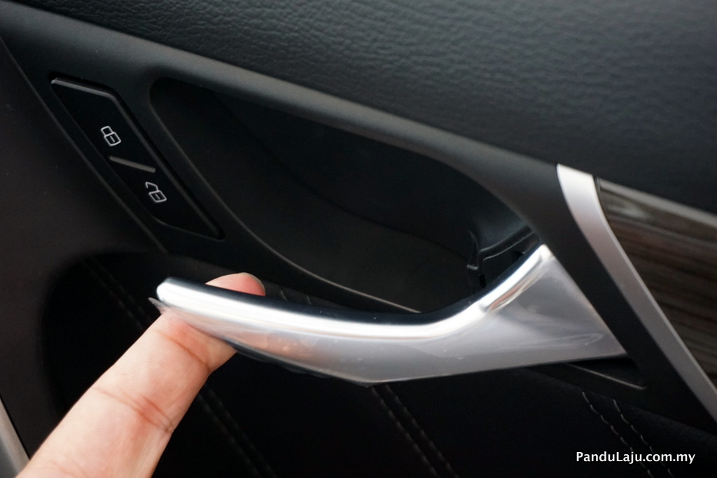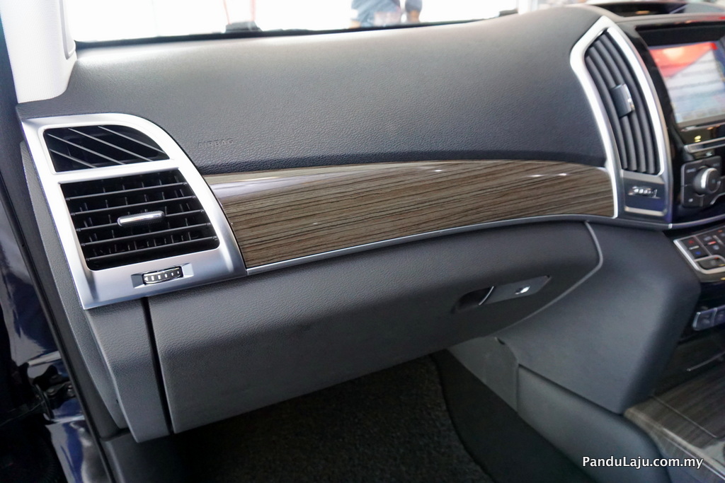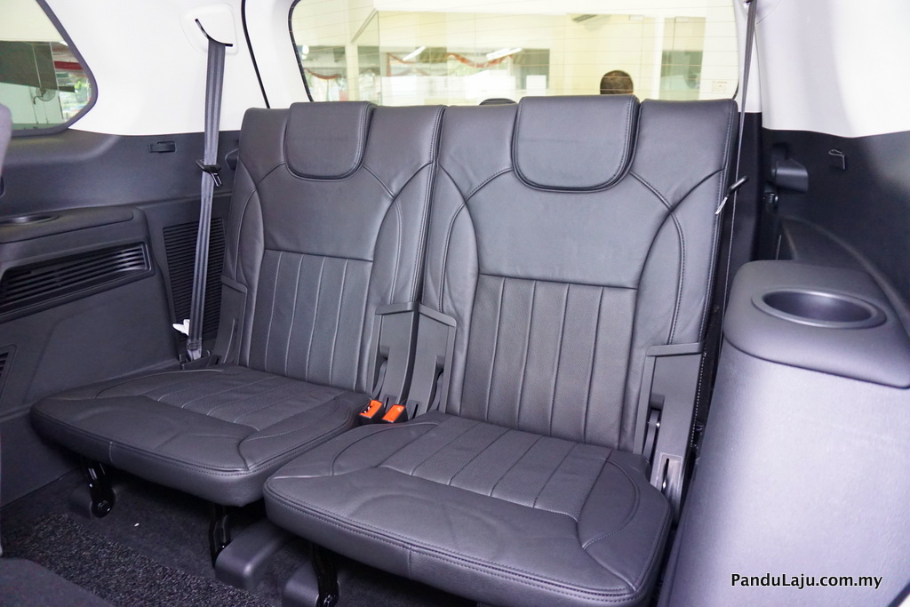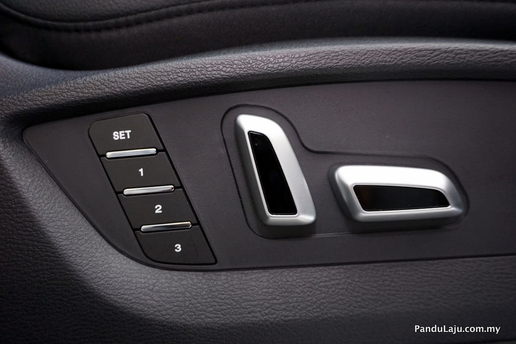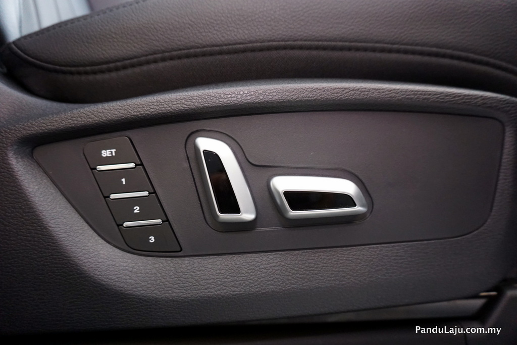 Masuk ke dalam kabin, aura mewah dapat dilihat menerusi padanan warna kelabu/hitam. Ciri kerusi elektrik 8-tetapan dengan fungsi lumbar dan memori memudahkan pemandu melaraskan posisi, manakala kerusi penumpang depan juga boleh dilaraskan secara 4-tetapan. Kerusi depan juga disediakan fungsi perehat kaki.