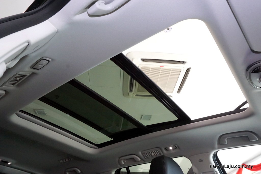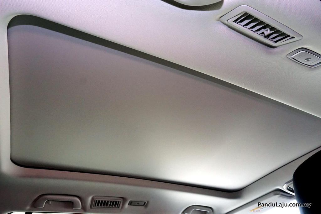 Bumbung panoramik yang dapat dibuka hingga belakang memberikan rasa lapang buat penumpang dalam kabin. Stereng kemasan kulit didatangkan dengan butang multifungsi yang memudahkan akses pemandu. Perjalanan jauh menjadi mudah dengan ada soket 3-pin di but belakang.