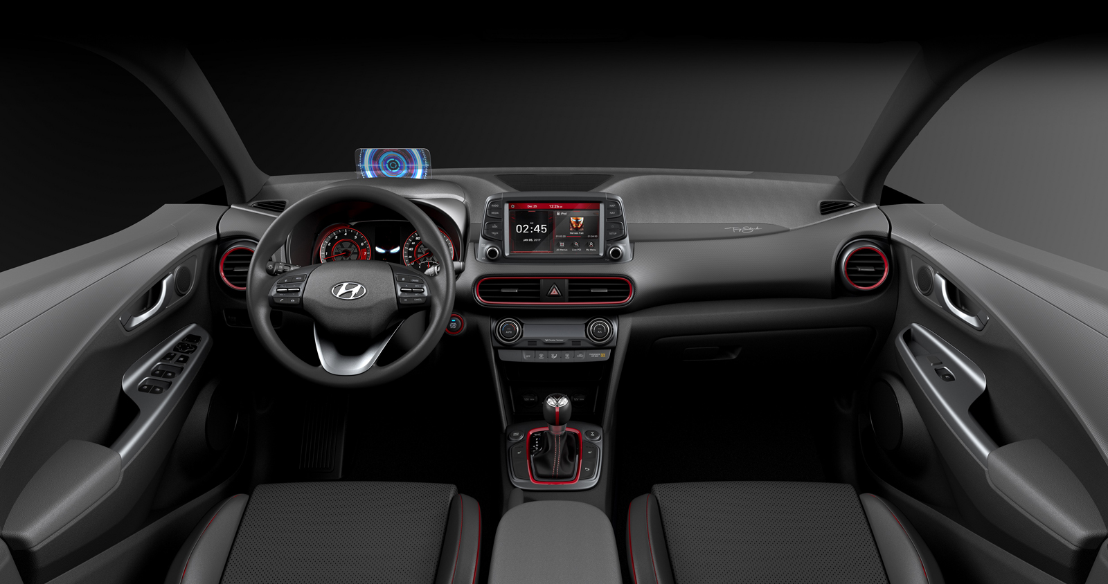 Melihat ke dalam, crossover tersebut dihiasi tombol gear Iron Man yang unik, kerusi kustom dan paparan dongak (HUD) yang direka kemas dan tiada pada mana-mana model Kona lain.