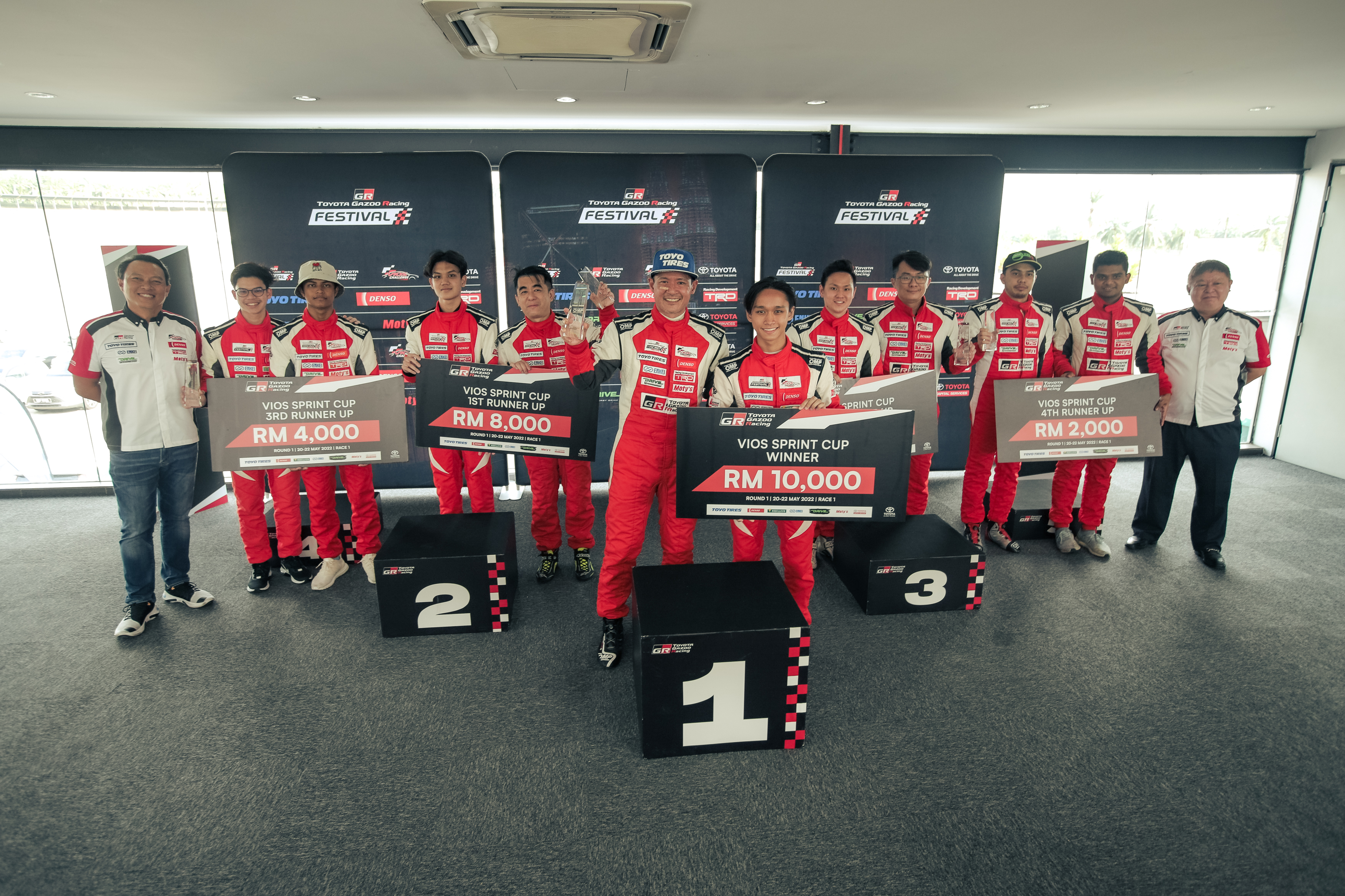 Juara kedua-dua perlumbaan GR Vios Sprint Cup akan menerima tunai RM10,000, manakala Naib Juara membawa pulang tunai RM8,000. Hadiah tempat ketiga, RM6,000, manakala pemenang keempat dan kelima masing-masing bawa pulang RM4,000 dan RM2,000.