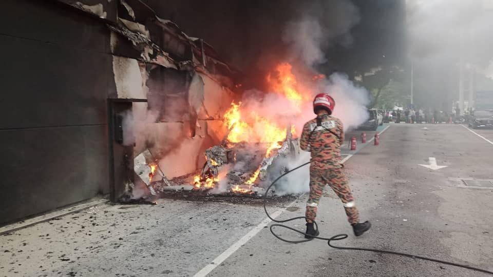 Setibanya pasukan keluaran operasi (PKO) ke lokasi didapati sebuah kereta Mercedes EQB sedang terbakar dan kebakaran dipercayai berlaku ketika kenderaan tersebut dicas.
