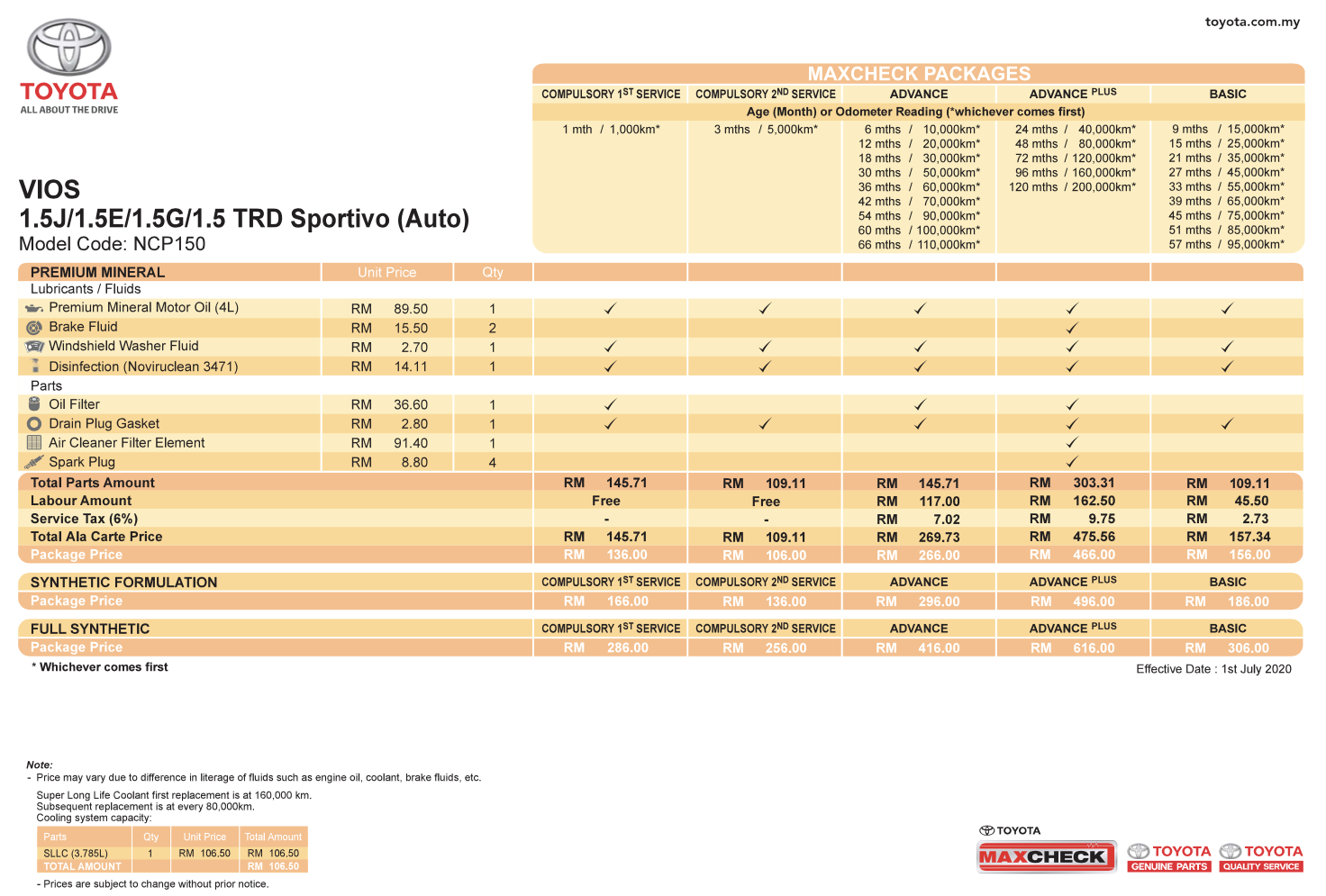 Anda boleh rujuk jadual servis untuk pelbagai varian berbeza Vios atau Yaris dengan pilihan minyak enjin lain melalui dua pautan ini: