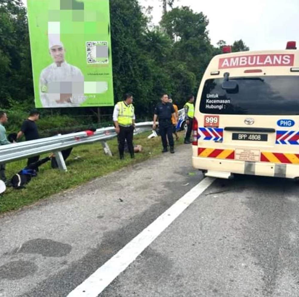 Kemalangan dipercayai berlaku apabila kedua-dua mangsa berada di luar kenderaan membuat kawalan kemalangan jalan raya melibatkan kenderaan terbabas sendiri di lokasi tempat kejadian.