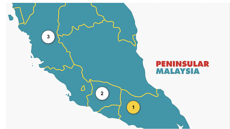 Berdasarkan maklumat, HPC akan disediakan di tiga negeri, masing-masing dua pengecas HPC. Berikut ialah senarainya: