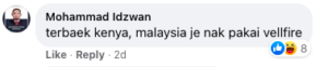 Tapi kalau sudah namanya netizen, pasti ada yang tidak melepaskan peluang meninggalkan komen mengaitkan isu sensasi dalam negara, misalnya isu pemilihan kereta Vellfire kepada menteri Kerajaan Persekutuan.