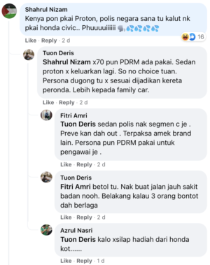 Ini termasuk mengatakan polis Malaysia sendiri tidak menggunakan produk Proton, tetapi dibantah netizen lain yang mendakwa Polis DirajaMalaysia (PDRM) memang sudah lama memiliki unit X70 dalam barisan flit agensi keselamatan itu.