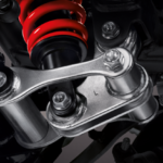 - Sistem suspensi menggunakan fork teleskopik boleh laras prabeban di depan dan monoshock ProLink boleh laras prabeban 7-tetapan di belakang.