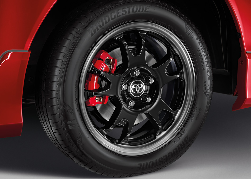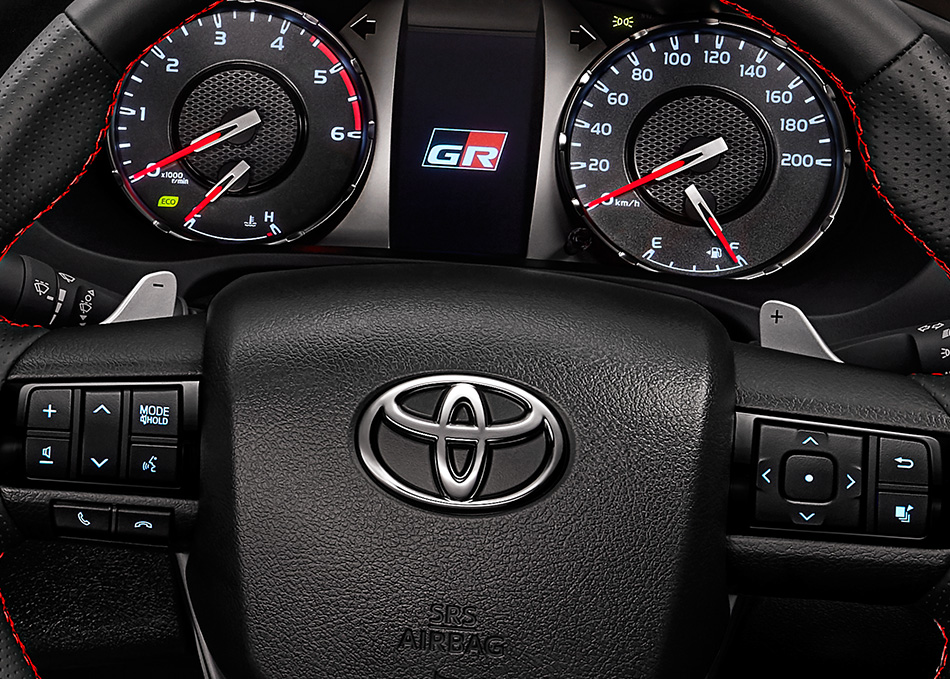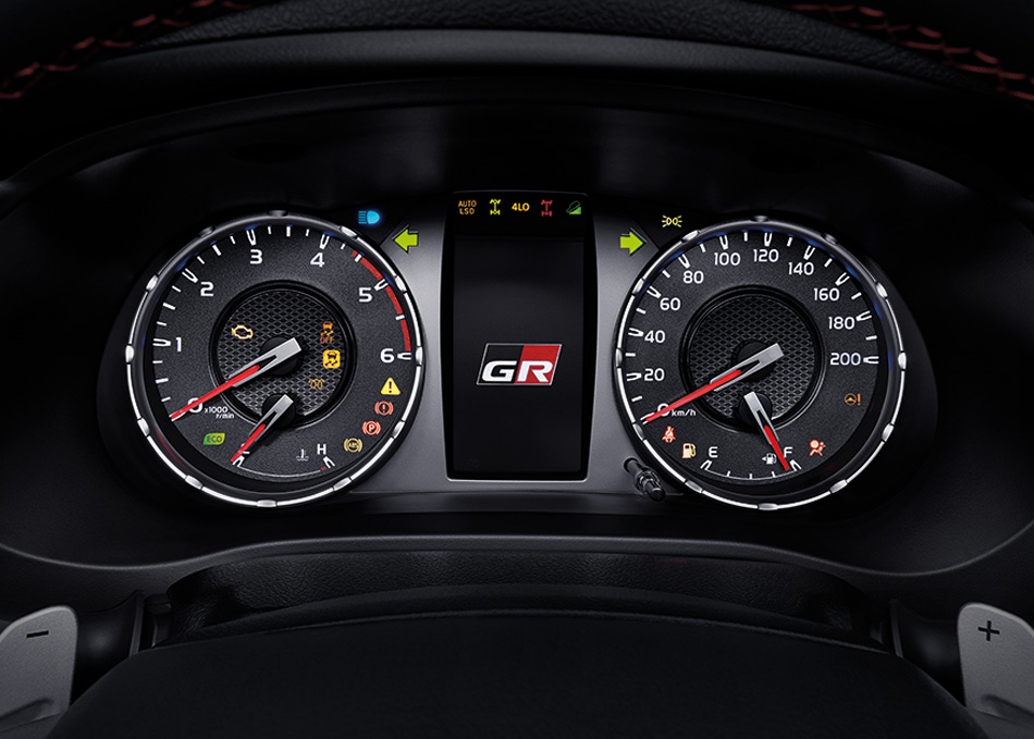 - Eleman sporty lain ialah pedal aluminium, tanda merah pada stereng, dan lencana GR pada kluster instrumen dan butang tekan mula.
