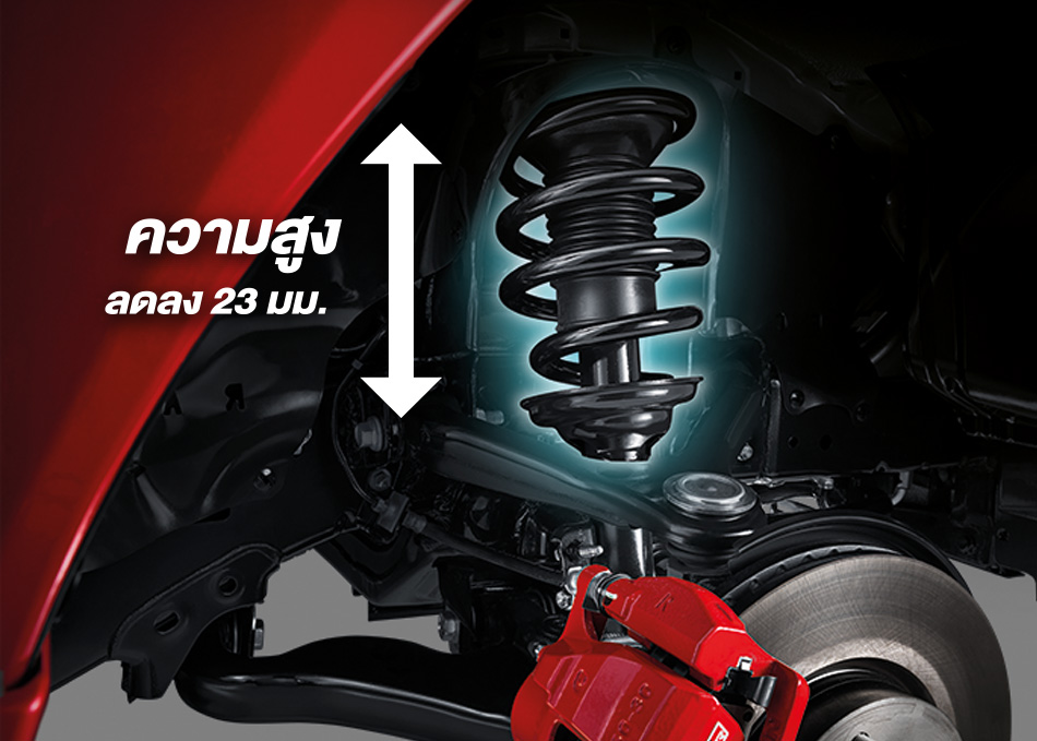 - Kedua-dua varian dipasangkan brek cakera dengan kaliper brek merah di depan dan brek dram di belakang.
