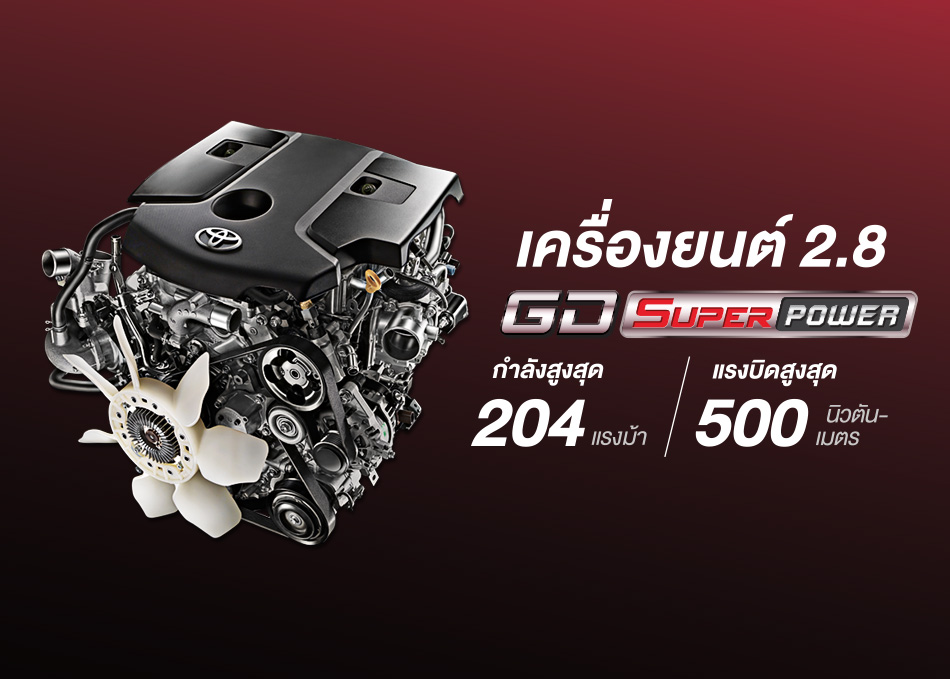 - Kemas kini terakhir menampilkan enjin 2.8L turbodiesel berkuasa 201hp dan tork 500Nm dengan transmisi automatik 6-kelajuan.