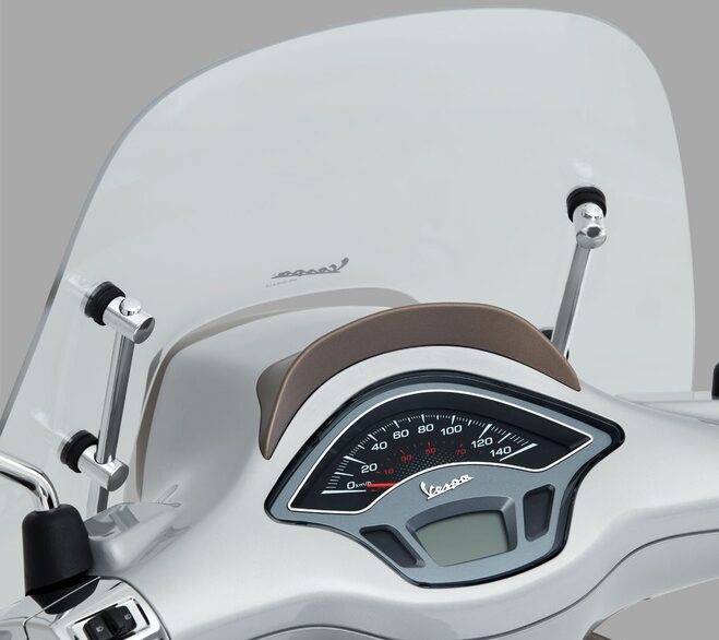 Ada lencana nombor siri edisi terhad tertera di sebalik panel depan dan jika diperhatikan model ini didatangkan dengan visor angin kecil yang mengimbau kembali model Vespa lama.