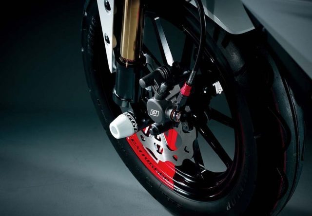 - Ukuran rim 12 inci dengan brek cakera di depan dan belakang.