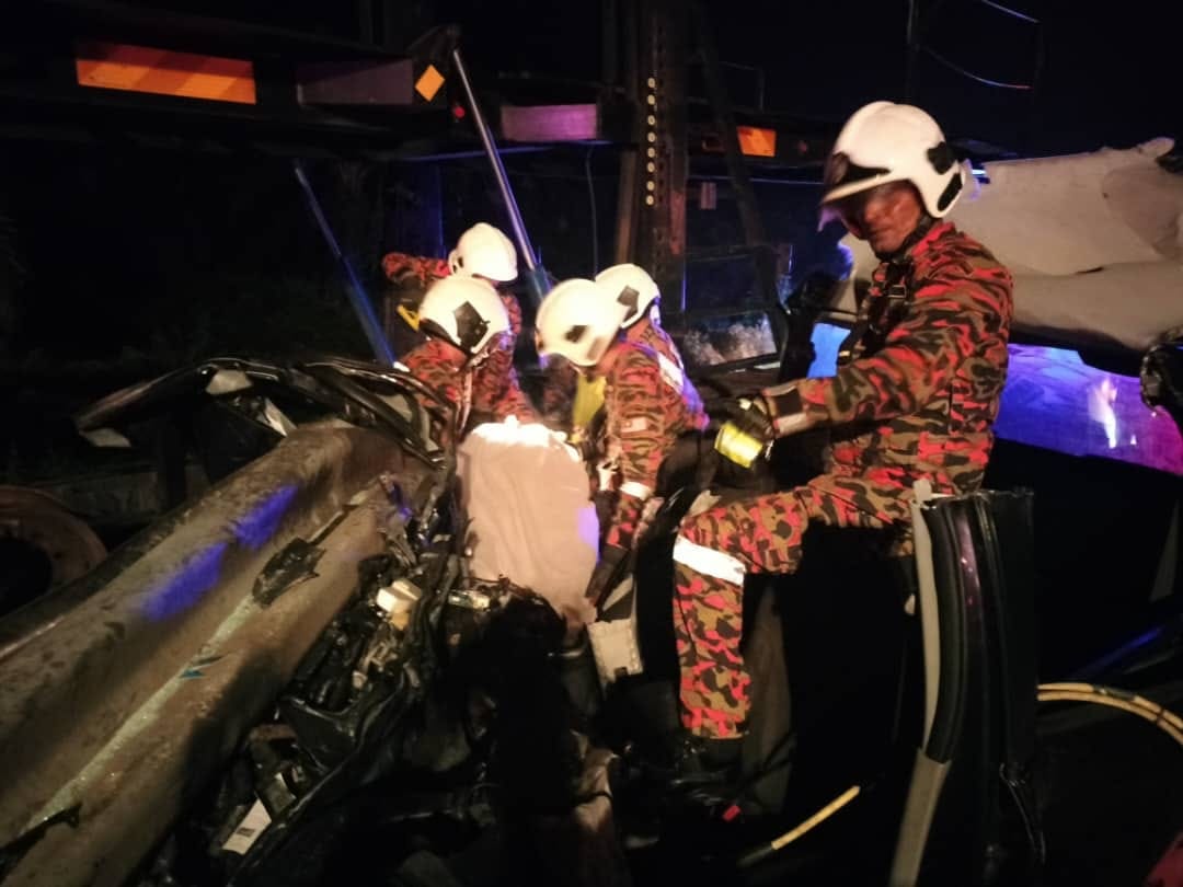 Apabila sampai di lokasi kejadian, ketika melalui selekoh, tiba-tiba MPV itu dipercayai hilang kawalan dan masuk ke laluan bertentangan dan dirempuh treler terbabit.