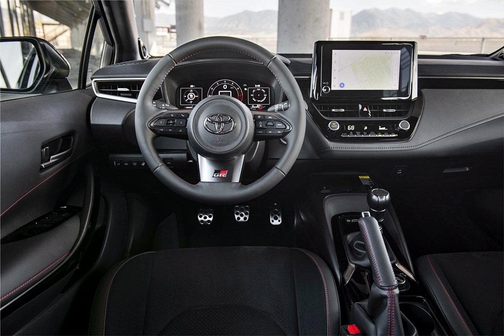- Semua Corolla GR (2023) dilengkapi teknologi bantuan pemandu Toyota Safety Sense (TSS) 3.0 dan unit infotainment skrin sentuh 8-inci.